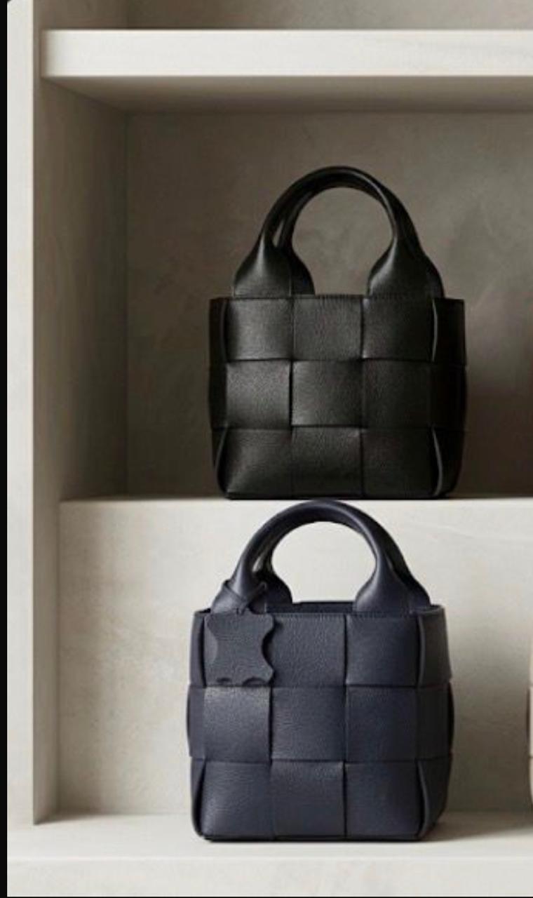 Bolsa Cubo Preta OneStory é confeccionada em couro legítimo, com acabamento trançado e formato estruturado. Tamanho médio, leve e funcional para o dia a dia. Alça de mão e alça longa removível. Tamanho: 16cm de largura x 16cm de altura (sem a alça).