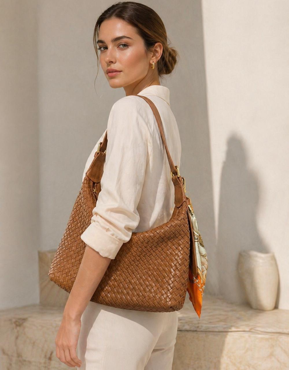 Bolsa Tressê Caramelo OneStory é confeccionada em couro legítimo com acabamento tressê na frente, criando um elegante efeito. Possui estrutura maleável, zíper e alça ajustável com ferragens douradas. Tamanho: 40cm de largura x 21cm de altura (sem a alça).